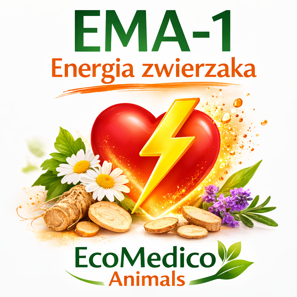 Zestaw dwóch formuł EcoMedico Animals wspierających energię oraz równowagę emocjonalną zwierzęcia.